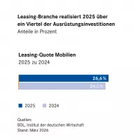 Berlin, März 2026 – „Wenn Unternehmen überhaupt noch investieren, investieren sie gezielt in Elektromobilität und Digitalisierung. Die klassischen Produktionsinvestitionen stehen dagegen weiter unter Druck“, erläutert Kai Ostermann, Präsident des Bundesverbandes Deutscher Leasing-Unternehmen (BDL). ...