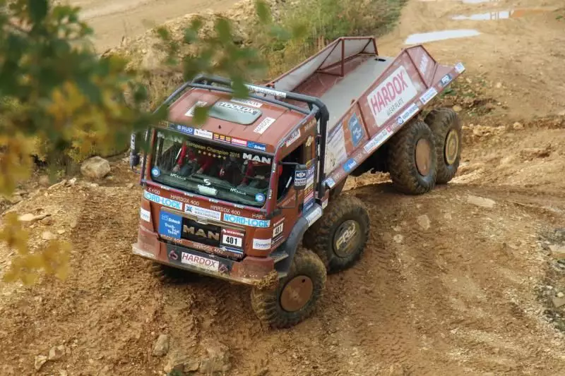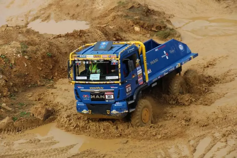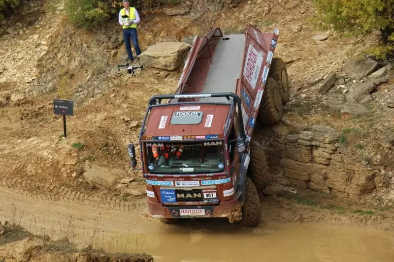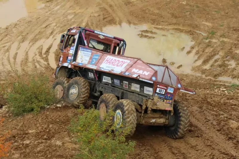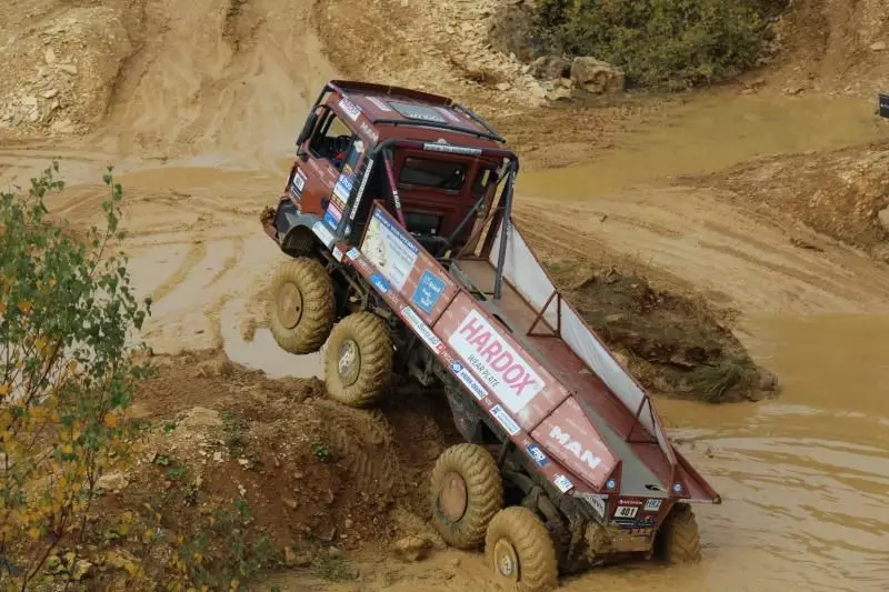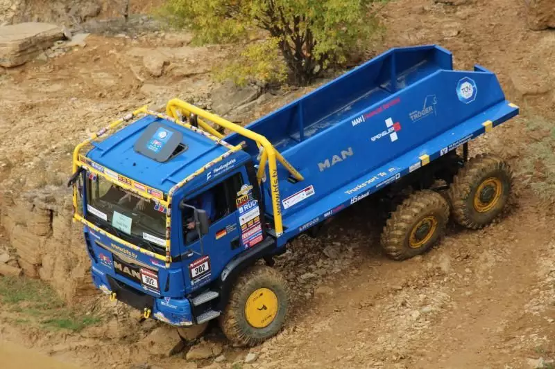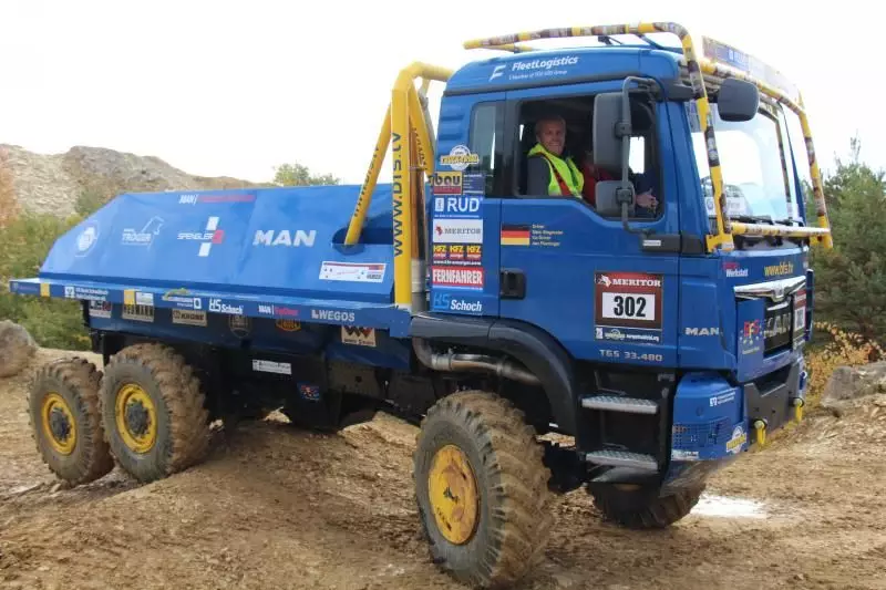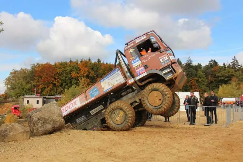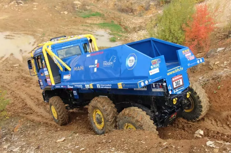 Das Unternehmen hatte das Gelände des Offroad-Parks Langenaltheim dabei in mehrere Stationen unterteilt. Während der Testfahrten erklärte das Personal die Ausstattungen wie die Lenkbremse, Kletterbremse und Fertigerbremse. Die Lenkbremse dient dazu, das Untersteuern, also das Schieben über die Vorderräder bei Kurvenfahrt im Gelände, durch selektiven Bremseingriff an den kurveninneren Hinterrädern zu verringern. Dadurch wird der Radius der gefahrenen Kurve kleiner. Die Kletterbremse erleichtert das Anfahren am Berg. Durch Aufrechthaltung des Bremsdruckes wird ein Zurückrollendes Fahrzeug verhindert. Die Fertigerbremse hält automatisch einen voreingestellten Bremsdruck für den Anfahr- und Schiebevorgang an der Straßenfertigermaschine. Dann rollt der Kipper auf Gefällestrecken nicht davon.
