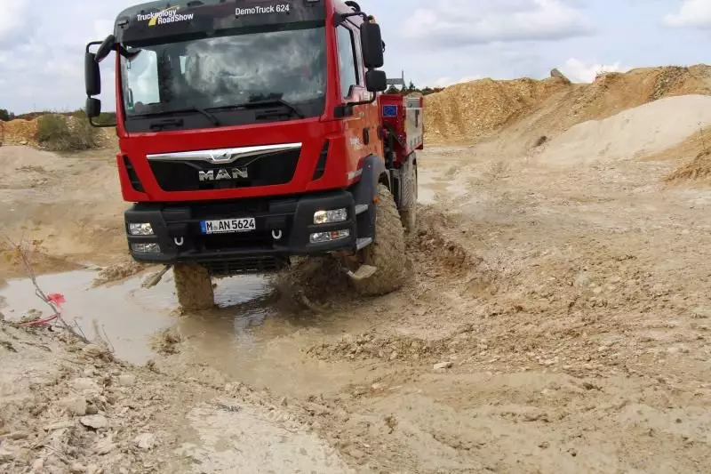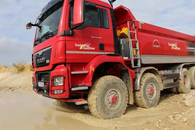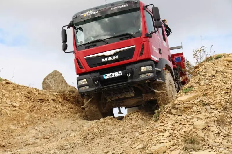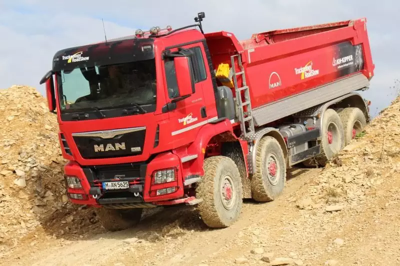 Rund 50 Fahrzeuge präsentierte MAN Truck & Bus auf den diesjährigen Traction Days Anfang Oktober aus dem Bereich Bau- und Schwerlasttransport. Zu den Hauptattraktionen zählten TGX-Fahrzeuge mit D38-Motor und MAN „TipMatic“ TX Getriebe. TGS-Fahrzeuge mit HydroDrive-Antrieb in den Achsformeln 4×4 H, 6×6 H und 8×6 H sowie Allradfahrzeuge der Baureihen TGM und TGS in den Achsformeln 4×4, 6×6, 8×6 und 8×8.