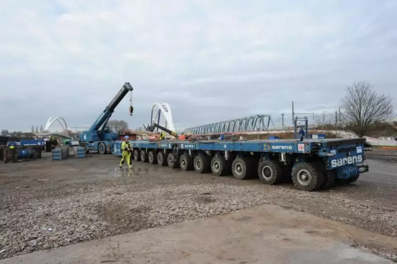 Am 20. Dezember 2012 beschloss eine deutsch-französische Kommission nach einer Ausschreibung für den Bau einer Trambrücke von Straßburg nach Kehl, den Vorschlag des Baukonzerns Bouygues anzunehmen. Bouygues hat vor, eine sogenannte „Doppel-Stabbrücken-Konstruktion“ mit zwei 20 Meter hohen Bögen zu bauen. Das Projekt hatte an Land den geringsten Flächenverbrauch und wurde auf der rechten Rheinseite in Kehl montiert. Zwei Enden der je 145 Meter langen Brückenelemente ruhen in der Flussmitte auf einem Mittelpfeiler. Der Schiffsverkehr durfte während der Bauzeit nicht gestört werden. Den Gesamtpreis von 24,3 Millionen teilen sich die f04ranzösische und die deutsche Seite. Die beiden Bogenbrücken waren rechtzeitig vor Ende Oktober fertig montiert worden und lagerten seither nebeneinander am Kehler Rheinufer. Der Einbau der beiden Elemente war für Ende Oktober geplant, doch die extreme Trockenheit der vorangegangenen Monate verzögerte das Vorhaben wegen extremen Niedrigwassers auf unabsehbare Zeit. Die Schifffahrt auf dem Rhein war deshalb oberhalb Koblenz stark eingeschränkt. Auch die für die Verlagerung der beiden auf je 1.100 Tonnen schwer berechneten Bogenbrücken über den Rhein angeforderten Pontons der belgischen Firma Sarens konnten den Niedrigwasserabschnitt bei Kaub deshalb nicht befahren. Erst gegen Ende Oktober setzten Regenfälle in den Alpen und Mittelgebirgen ein, woraufhin der Wasserstand stieg und die Pontons samt Schwerlastrollern und Ausrüstungen wieder auf die Baustelle Kehl konnten.