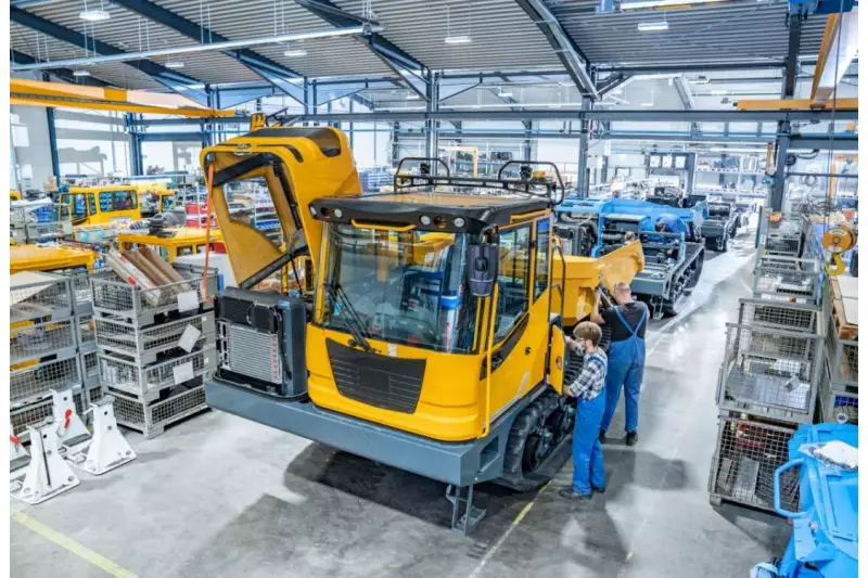 2018 hat Bergmann den ersten E-Antriebsstrang selbst entwickelt. Eine Lösung von der Stange bot nicht die geforderte Flexibilität. Auch das Batteriemanagementsystem, der Schlüssel zu Effizienz und Alltagstauglichkeit jeder E-Maschine, brachten die Meppener unter eigene Kontrolle. Lediglich die Zellen, modernste, brandsichere LiFe-Technologie mit hoher Zyklenfestigkeit, werden zugekauft. Die Batteriemodule entstehen dann auf einer eigenen Fertigungslinie im Emsland. „Alles selbst zu machen ist eigentlich verrückt angesichts unserer Unternehmensgröße. Aber es funktioniert sehr gut. Das Know-how ist vorhanden, auch im Programmierbereich durch unsere große Erfahrung im Sondermaschinenbau“, sagt Bergmann. Zwei Jahre wurde der Antrieb intensiv getestet. Erst als dieses Konzept stand, wurde das Design des C804e drumherum entwickelt. „Die Nutzlast ist beim Dumper typischerweise deutlich höher als das eigene Leergewicht. Das birgt natürlich Herausforderungen. Der Antriebsstrang eines E-Fahrzeugs bietet uns in seiner Einfachheit neuen Bauraum, den wir optimal ausnutzen wollten. Stabilität und Schwerpunkt sind gerade bei Kompaktmaschinen elementar für die Anwendersicherheit“, so Kirschner. Der Allradantrieb sorgt im Zusammenspiel mit den Pendelgelenk und dem äußerst verwindungssteifen Stahlrahmen des C804e für volle Offroadtauglichkeit. „Die Höchstgeschwindigkeit haben wir auf baustellengerechte 23 km/h begrenzt. Dafür haben wir ausreichend Zugkraft für steile Anstiege mit voller Beladung“, so Kirschner. Der beim Antrieb beginnende Konstruktionsweg ermöglicht zudem eine sehr kompakte Bauweise mit ideal platzierten Komponenten. Mit einer Höhe von nur 1.996 mm schlüpft der 804e durch jedes Tiefgaragentor und dank Vierradlenkung ist die 3.950 mm lange und 1.486 mm schlanke Maschine äußerst wendig. Die Kompaktheit geht dabei nicht zu Lasten des Fahrers. Er genießt in der Kabine mit Drehsitz den Bergmann-typischen Komfort, einen unverbauten Überblick in Fahrt- und Arbeitsrichtung und kann auf einem zweiten (Not-) Sitz sogar noch einen Kollegen mitnehmen.