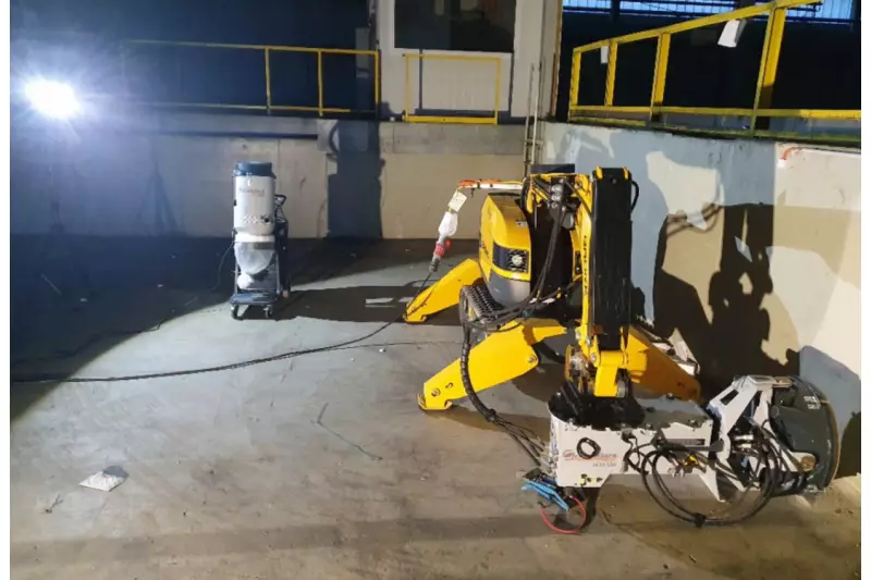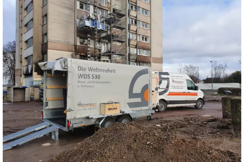 Die Schwamborn Wand-, Decken- und Bodenschleifmaschine WDS 530 und der Roboter Brokk 200 waren im Januar auf großer Demo-Tour. Die Demo startete in Straßburg: an der Außenwand eines Hochhauses wurde Farbe abgetragen. Danach ging es weiter nach Berlin: an der Decke einer Brücke hat die Systemkombination WDS 530 und Brokk 200 Asbest substanzschonend abgetragen. Und die letzte Station der Demo-Tour war Minden: präzises entfernen einer PCB-Farbe an der Wand in einer Industriehalle.