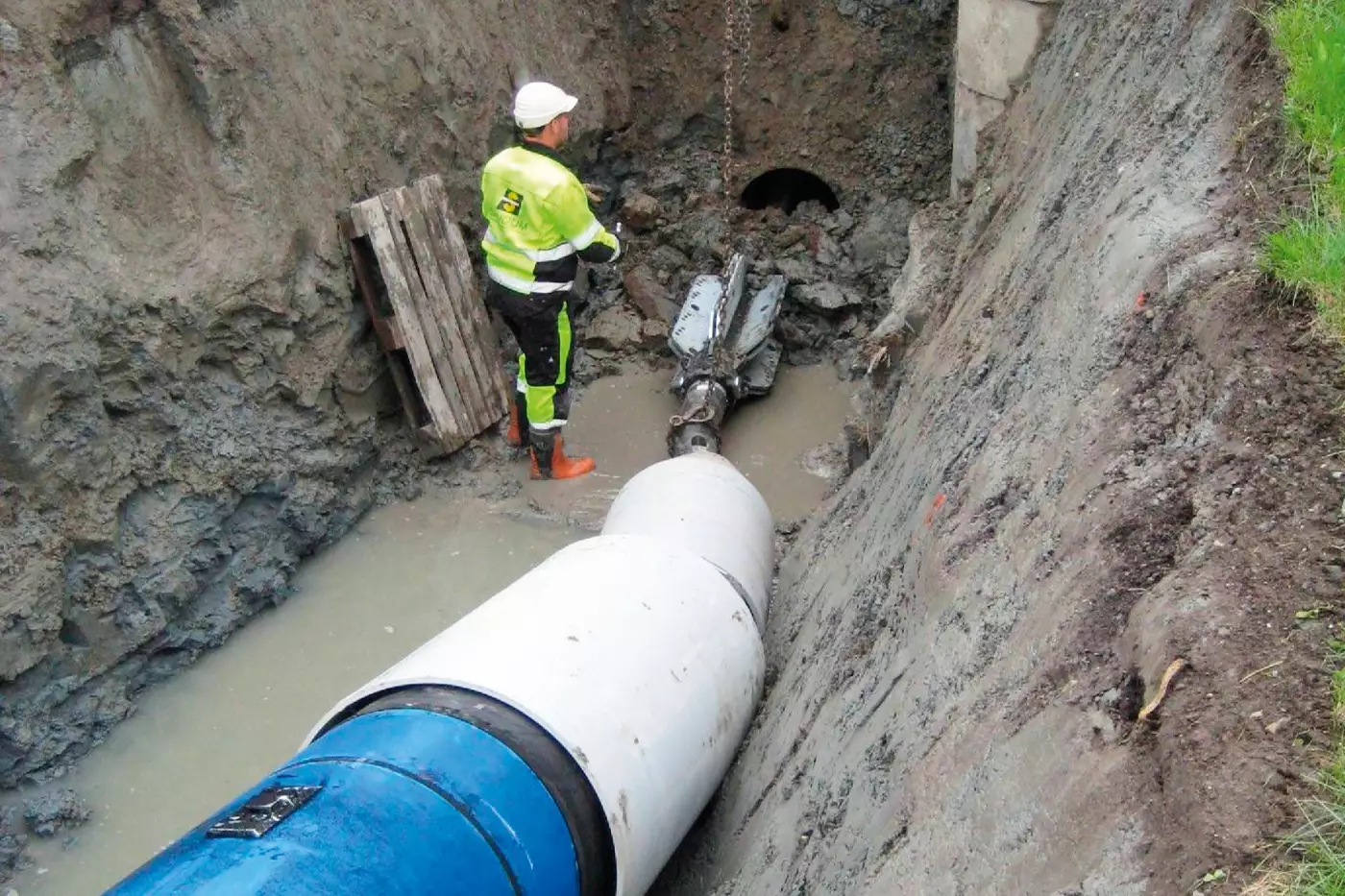 Am Dienstag, den 3. September um 8:30 Uhr wurde das Pumpensystem gestartet. Eine Kombination aus einer GSZ-Pumpe, zwei KRD-Pumpen und drei LH-Pumpen übernahm die Ableitung. Die GSZ-Pumpe, bekannt für sehr hohe Fördermengen und robuste Bauweise, übernahm den Hauptvolumenstrom: Typische Merkmale dieser Baureihe sind Fördermengen von über 10.000 Liter pro Minute, Motorleistungen bis zu 30 kW, verschleißfeste Hydraulik und ein Schwerlastmantel – ideal für großvolumige und kontinuierliche Wasserhaltung selbst bei abrasivem Schmutzwasser.
